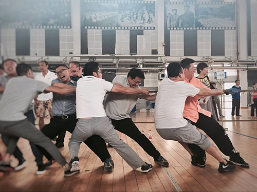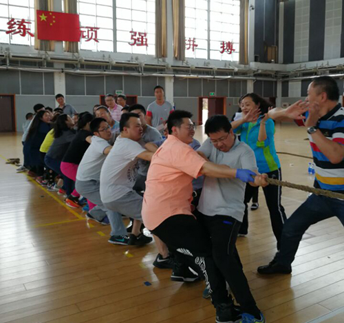 5月23日下午2:20,西南政法大学2017年教职工拔河比赛在学生活动中心举行。本次比赛采取单淘汰赛制,一局定胜负,各分工会参赛队每轮上场20人,男女各十人。