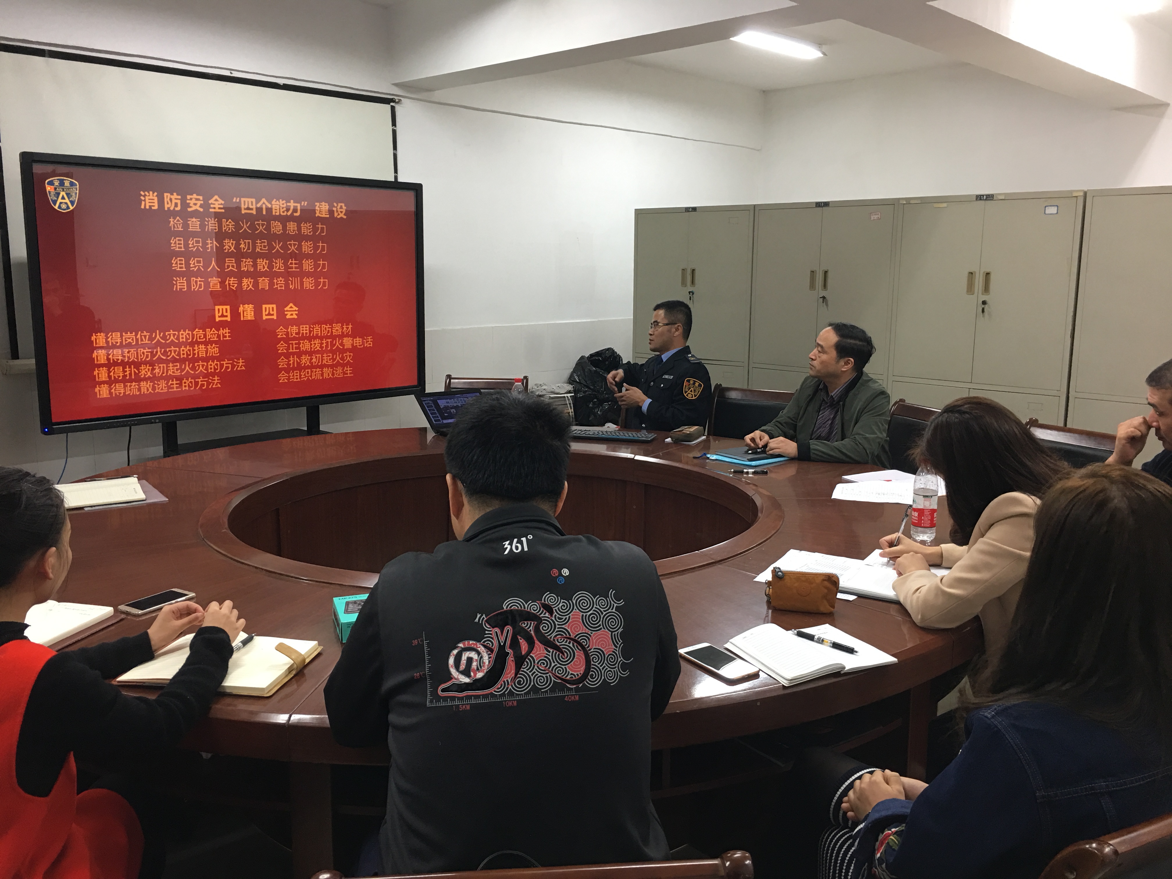 为不断提高教职工对消防安全工作的认识,掌握消防安全基本常识,熟悉消防灭火器材的使用方法,2017年10月17日,基建后勤管理处邀请重庆市安宣防火中心的刘延彬讲师作消防安全知识专题培训,全处21名干部职工参加了培训